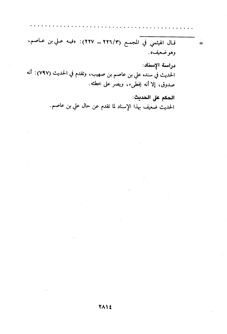 = قال الهيثمي في المجمع (3/ 226 - 227): "فيه علي بن عاصم، وهو ضعيف".