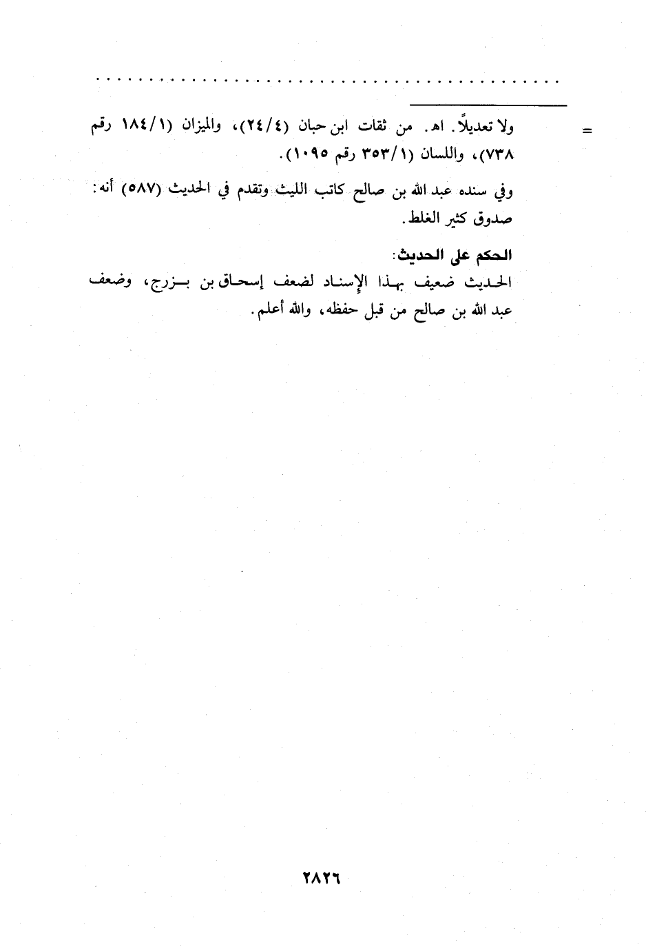 وفي سنده عبد الله بن صالح كاتب الليث وتقدم في الحديث (587) أنه: صدوق كثير الغلط.