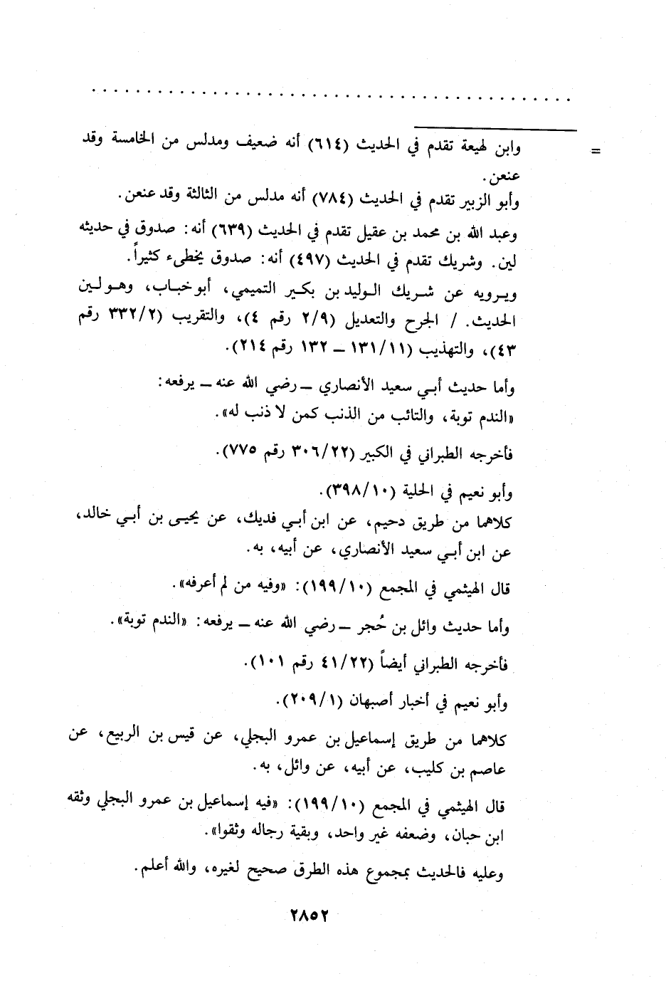 وأما حديث وائل بن حُجر -رضي الله عنه- يرفعه: "الندم توبة".