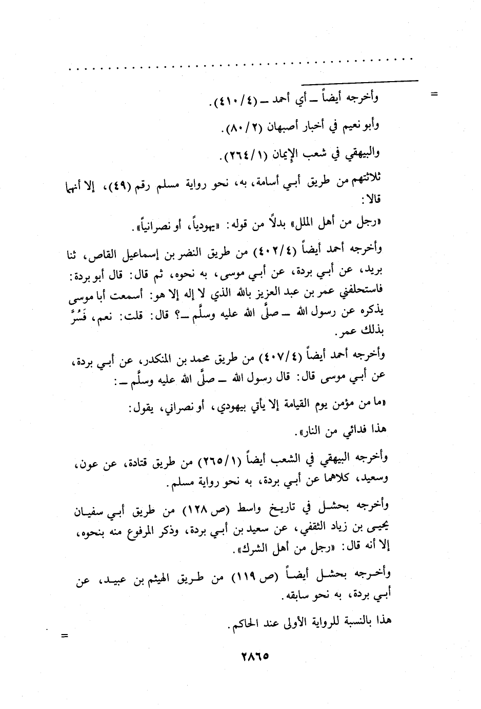 وأخرجه بحشل أيضاً (ص 119) من طريق الهيثم بن عبيد، عن أبي بردة، به نحو سابقه.