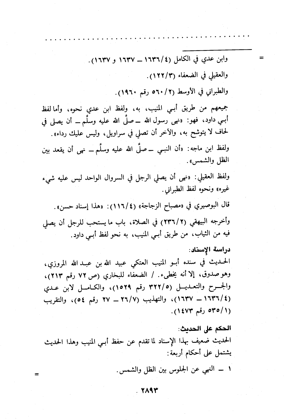 جميعهم من طريق أبي المنيب، به، ولفظ ابن عدي نحوه، وأما لفظ أبي داود، فهو: "نهى رسول الله -صلى الله عليه وسلم- أن يصلى في لحاف لا يتوشح به، والآخر أن تصلي في سراويل، وليس عليك رداء".