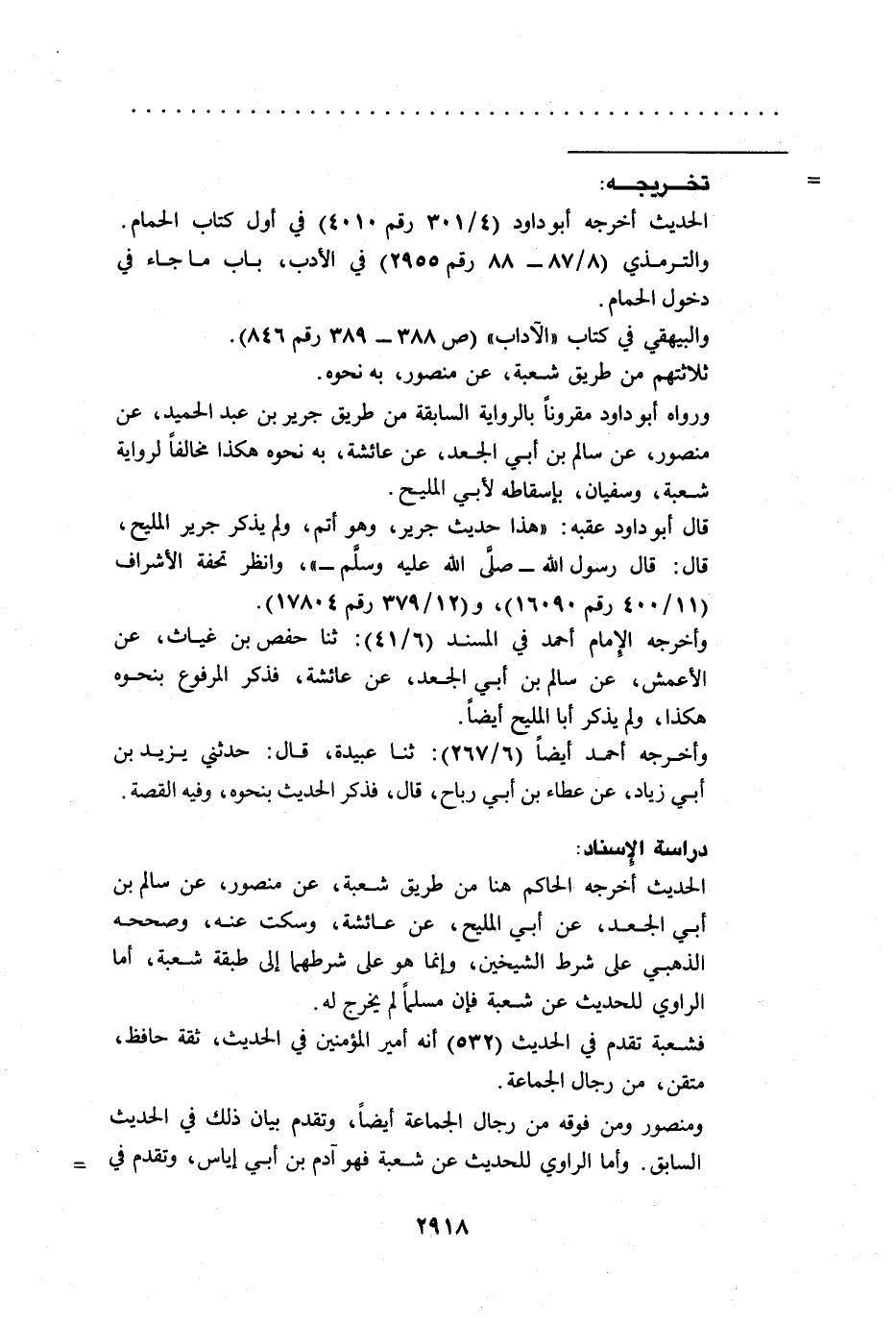 ورواه أبو داود مقروناً بالرواية السابقة من طريق جرير بن عبد الحميد، عن منصور، عن سالم بن أبي الجعد، عن عائشة، به نحوه هكذا مخالفاً لرواية شعبة، وسفيان، بإسقاطه لأبي المليح.
