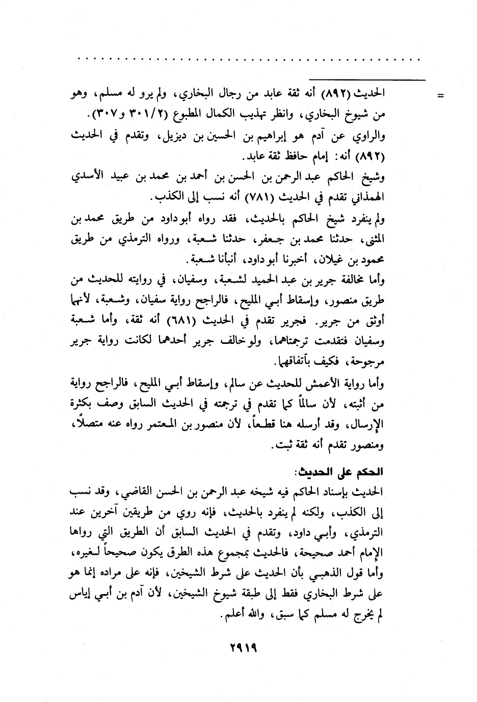 = الحديث (892) أنه ثقة عابد من رجال البخاري، ولم يرو له مسلم، وهو من شيوخ البخاري، وانظر تهذيب الكمال المطبوع (2/ 301 و 307).
