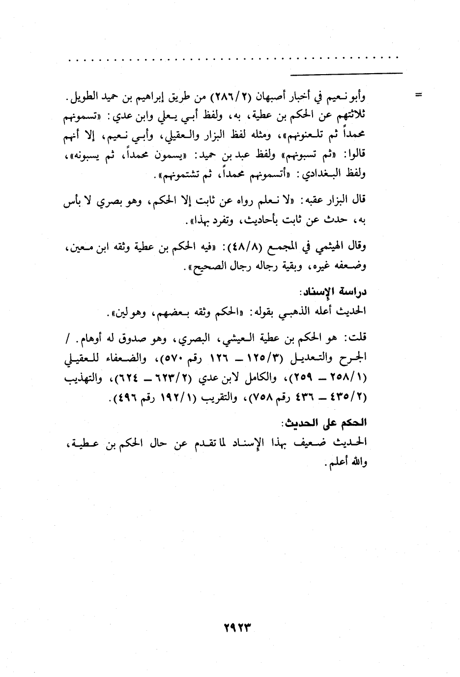 وقال الهيثمي في المجمع (8/ 48): "فيه الحكم بن عطية وثقه ابن معين، وضعفه غيره، وبقية رجاله رجال الصحيح".