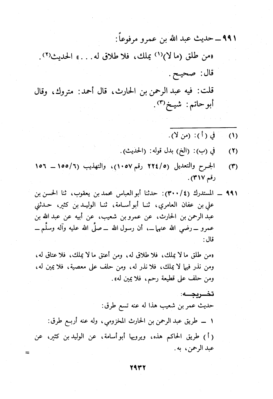 991 - حديث عبد الله بن عمرو مرفوعاً: