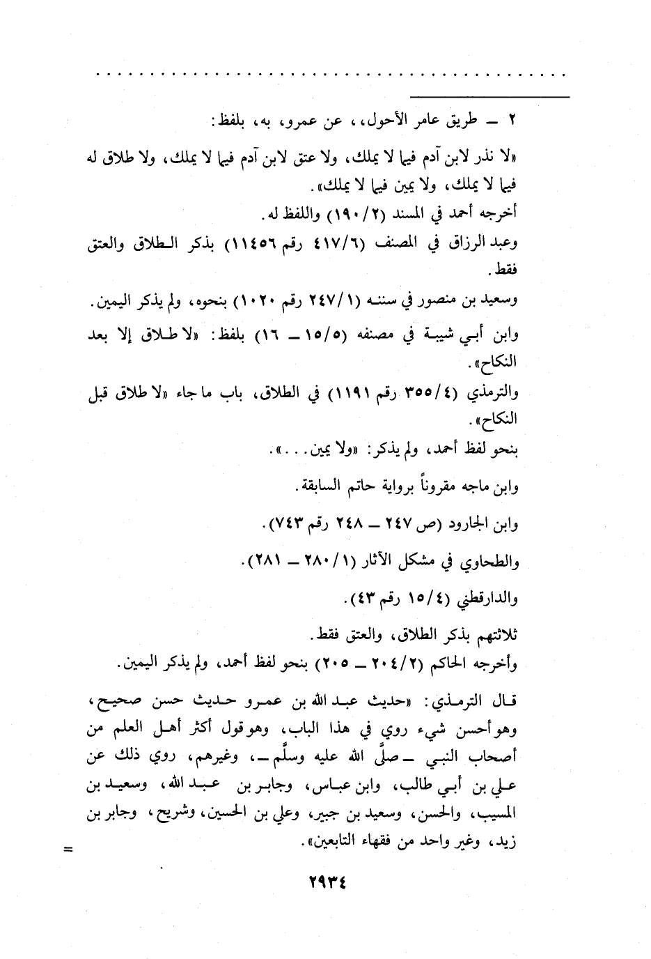 قال الترمذي: "حديث عبد الله بن عمرو حديث حسن صحيح، وهو أحسن شيء روي في هذا الباب، وهو قول أكثر أهل العلم من أصحاب النبي -صلى الله عليه وسلم-، وغيرهم، روي ذلك عن علي بن أبي طالب، وابن عباس، وجابر بن عبد الله، وسعيد بن المسيب، والحسن، وسعيد بن جبير، وعلي بن الحسين، وشريح، وجابر بن زيد، وغير واحد من فقهاء التابعين". =