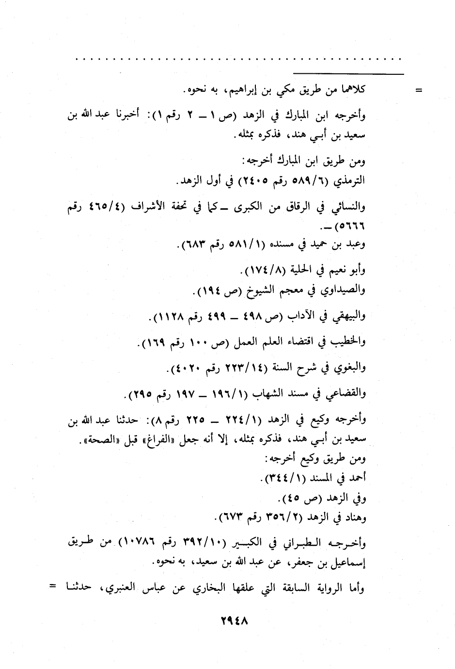 وأخرجه ابن المبارك في الزهد (ص 1 - 2 رقم 1): أخبرنا عبد الله بن سعيد بن أبي هند، فذكره بمثله.