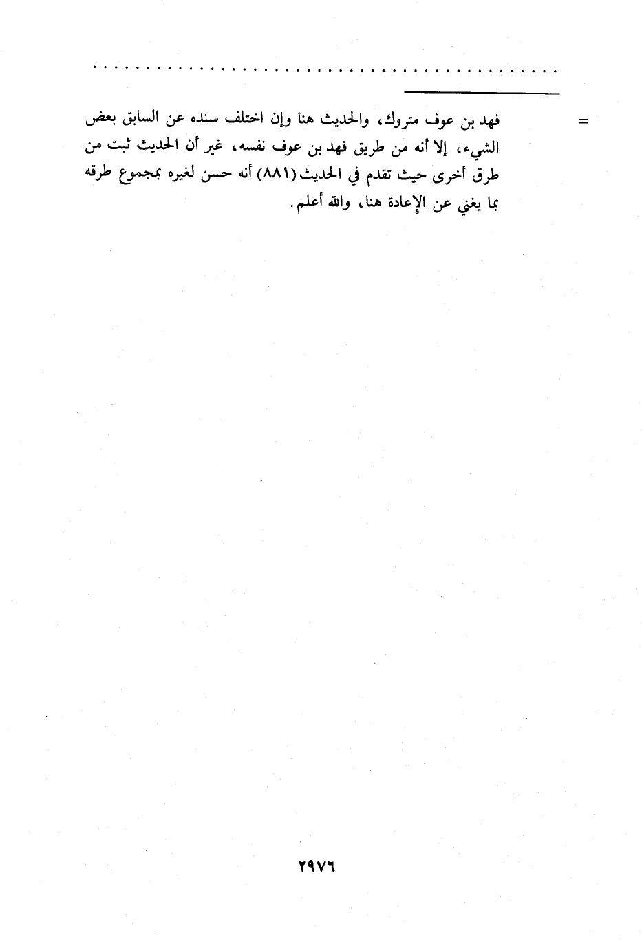 = فهد بن عوف متروك، والحديث هنا وإن اختلف سنده عن السابق بعض الشيء، إلا أنه من طريق فهد بن عوف نفسه، غير أن الحديث ثبت من طرق أخرى حيث تقدم في الحديث (881) أنه حسن لغيره بمجموع طرقه بما يغني عن الإعادة هنا، والله أعلم.