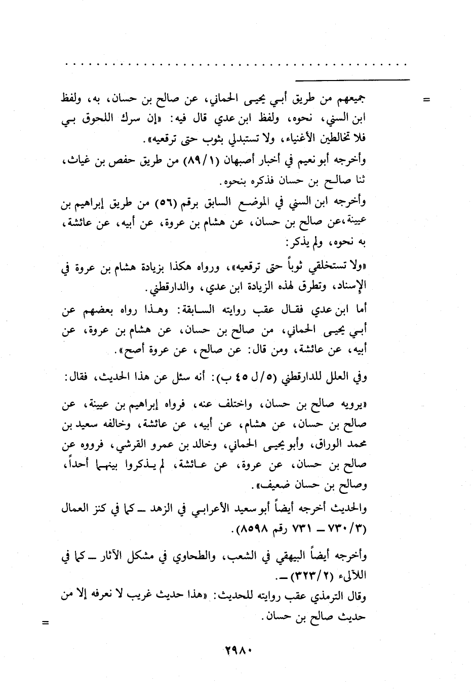 وقال الترمذي عقب روايته للحديث: "هذا حديث غريب لا نعرفه إلا من حديث صالح بن حسان. =
