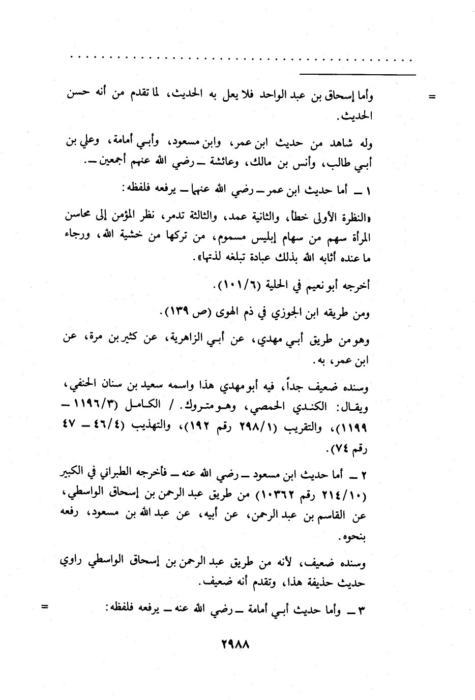 2 - أما حديث ابن مسعود -رضي الله عنه- فأخرجه الطبراني في الكبير (10/ 214 رقم 10362) من طريق عبد الرحمن بن إسحاق الواسطي، عن القاسم بن عبد الرحمن، عن أبيه، عن عبد الله بن مسعود، رفعه بنحوه.