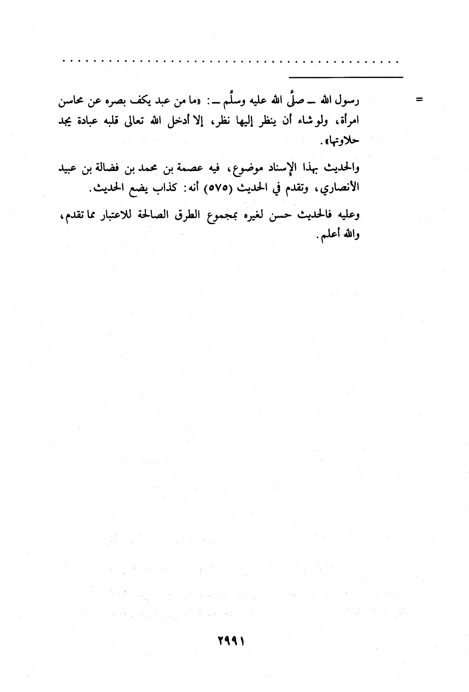 = رسول الله -صلى الله عليه وسلم-: "ما من عبد يكف بصره عن محاسن امرأة، ولو شاء أن ينظر إليها نظر، إلا أدخل الله تعالى قلبه عبادة يجد حلاوتها".