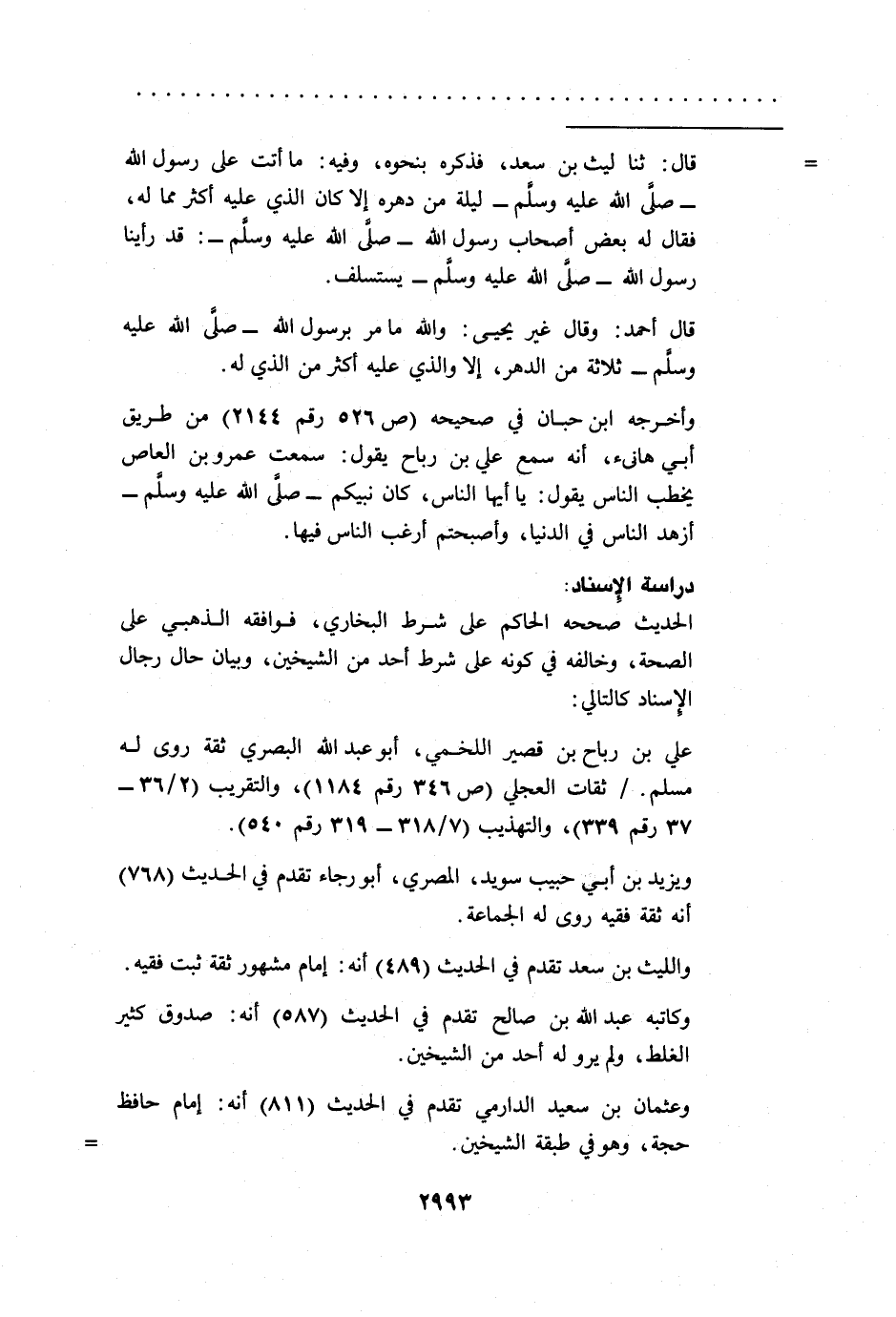وأخرجه ابن حبان في صحيحه (ص 526 رقم 2144) من طريق أبي هانئ، أنه سمع علي بن رباح يقول: سمعت عمرو بن العاص يخطب الناس يقول: يا أيها الناس، كان نبيكم -صلى الله عليه وسلم- أزهد الناس في الدنيا، وأصبحتم أرغب الناس فيها.