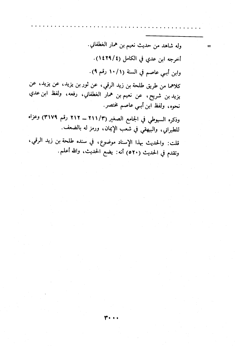 كلاهما من طريق طلحة بن زيد الرقي، عن ثور بن يزيد، عن يزيد، عن يزيد بن شريح، عن نعيم بن همار الغطفاني، رفعه، ولفظ ابن عدي نحوه، ولفظ ابن أبي عاصم مختصر.