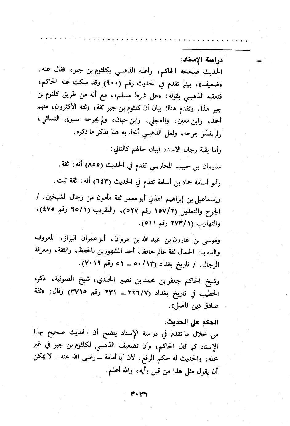 من خلال ما تقدم في دراسة الإسناد يتضح أن الحديث صحيح بهذا الإسناد كما قال الحاكم، وأن تضعيف الذهبي لكلثوم بن جبر في غير محله، والحديث له حكم الرفع، لأن أبا أمامة -رضي الله عنه- لا يمكن أن يقول مثل هذا من قبل رأيه، والله أعلم.