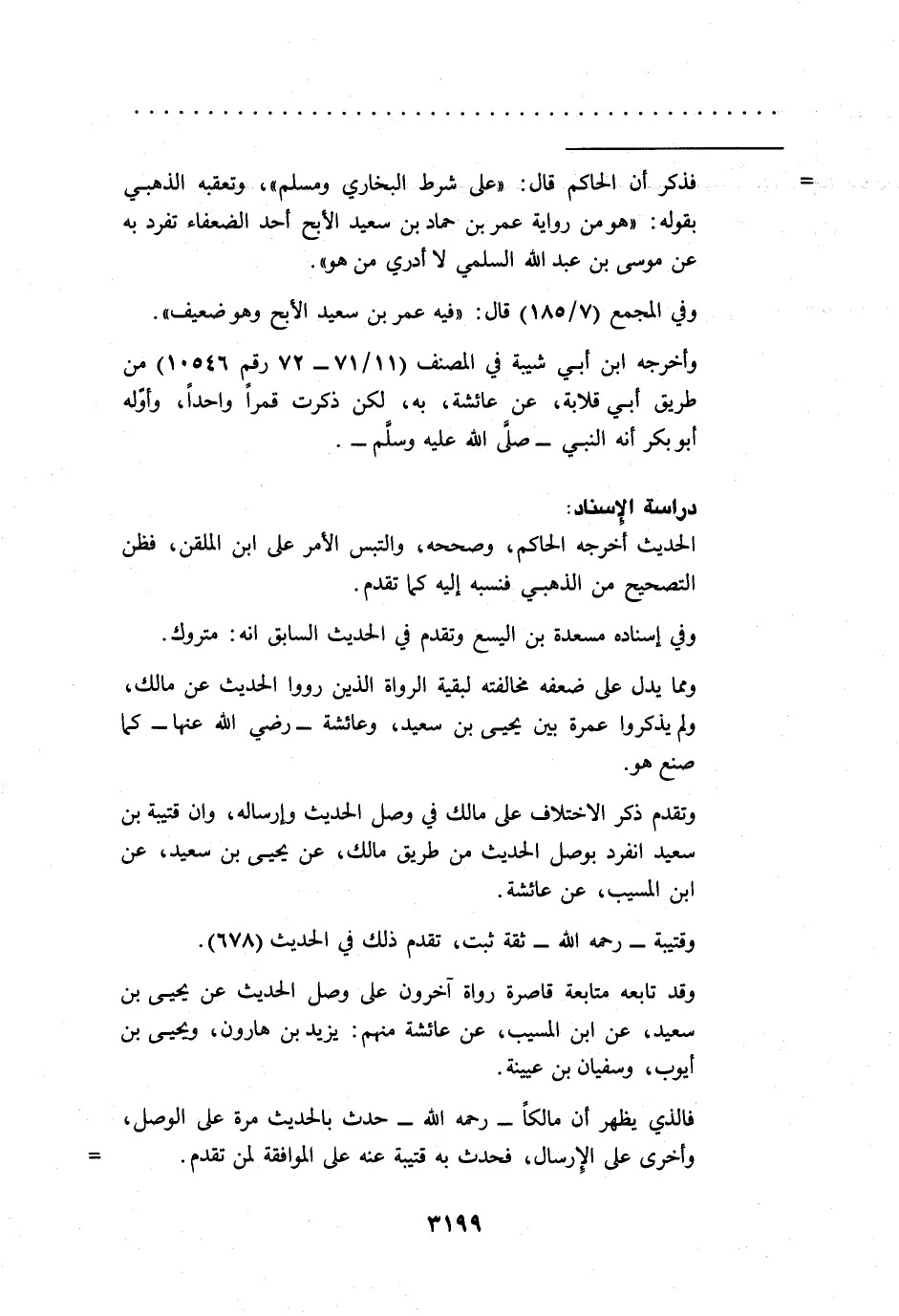 ومما يدل على ضعفه مخالفته لبقية الرواة الذين رووا الحديث عن مالك، ولم يذكروا عمرة بين يحيى بن سعيد، وعائشة -رضي الله عنها -كما صنع هو.