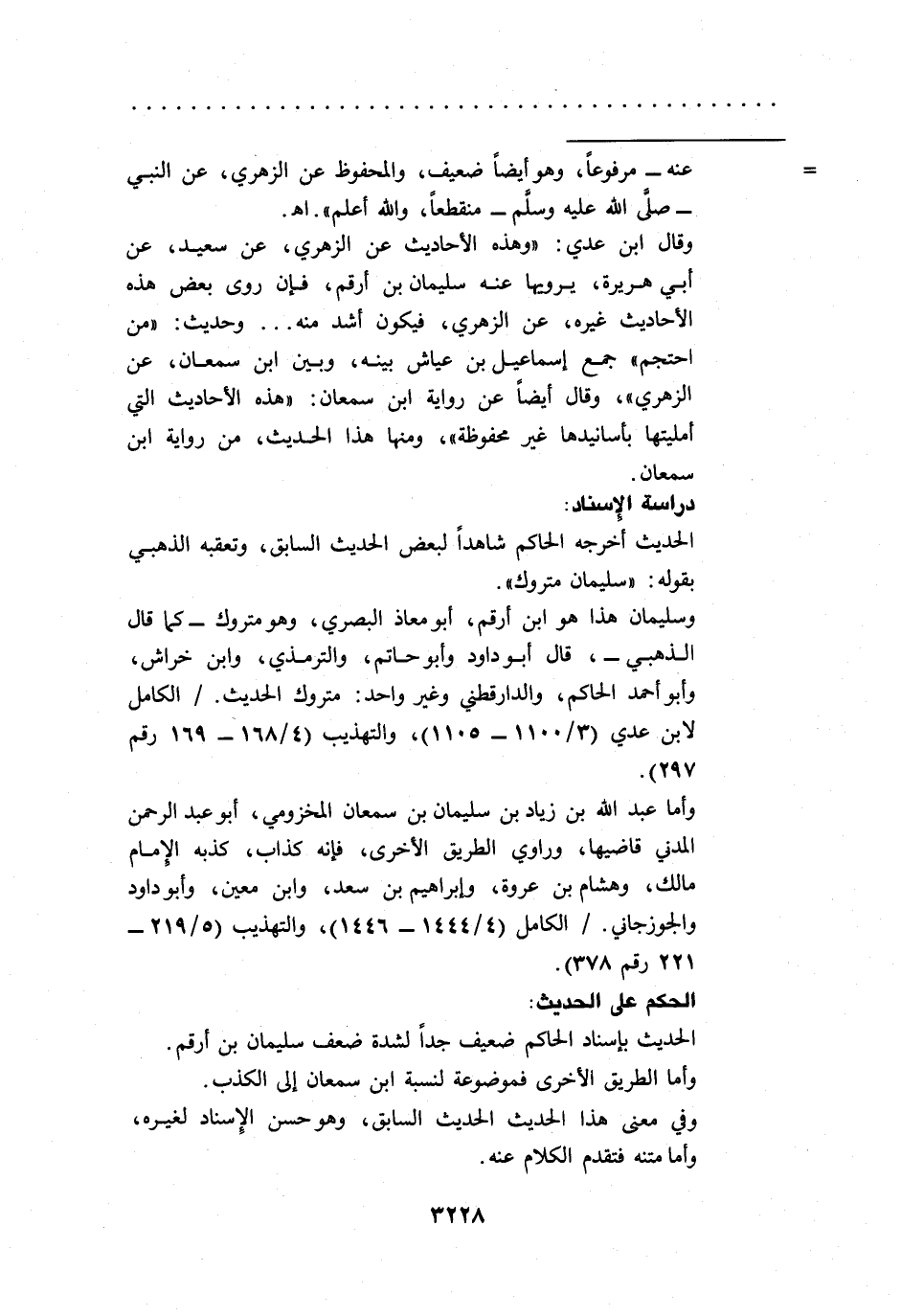 وقال ابن عدي: "وهذه الأحاديث عن الزهري، عن سعيد، عن أبي هريرة، يرويها عنه سليمان بن أرقم، فإن روى بعض هذه الأحاديث غيره، عن الزهري، فيكون أشد منه ... وحديث: "من احتجم" جمع إسماعيل بن عياش بينه، وبين ابن سمعان، عن الزهري"، وقال أيضاً عن رواية ابن سمعان: "هذه الأحاديث التي أمليتها بأسانيدها غير محفوظة"، ومنها هذا الحديث، من رواية ابن سمعان.