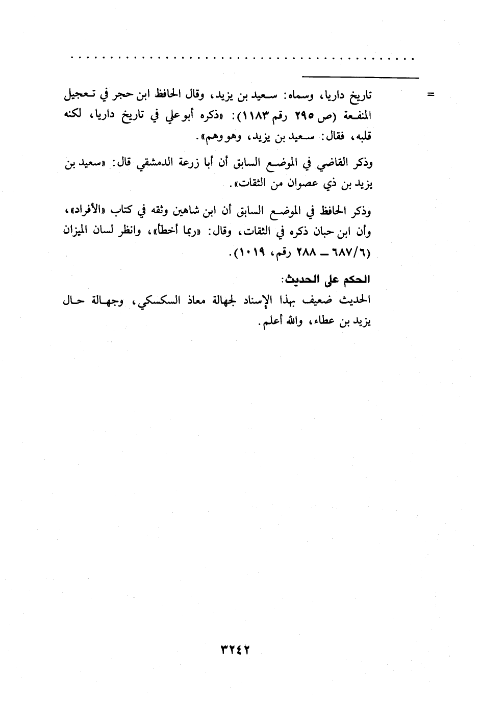 = تاريخ داريا، وسماه: سعيد بن يزيد، وقال الحافظ ابن حجر في تعجيل المنفعة (ص 295 رقم 1183): "ذكره أبو علي في تاريخ داريا، لكنه قلبه، فقال: سعيد بن يزيد، وهو وهم".