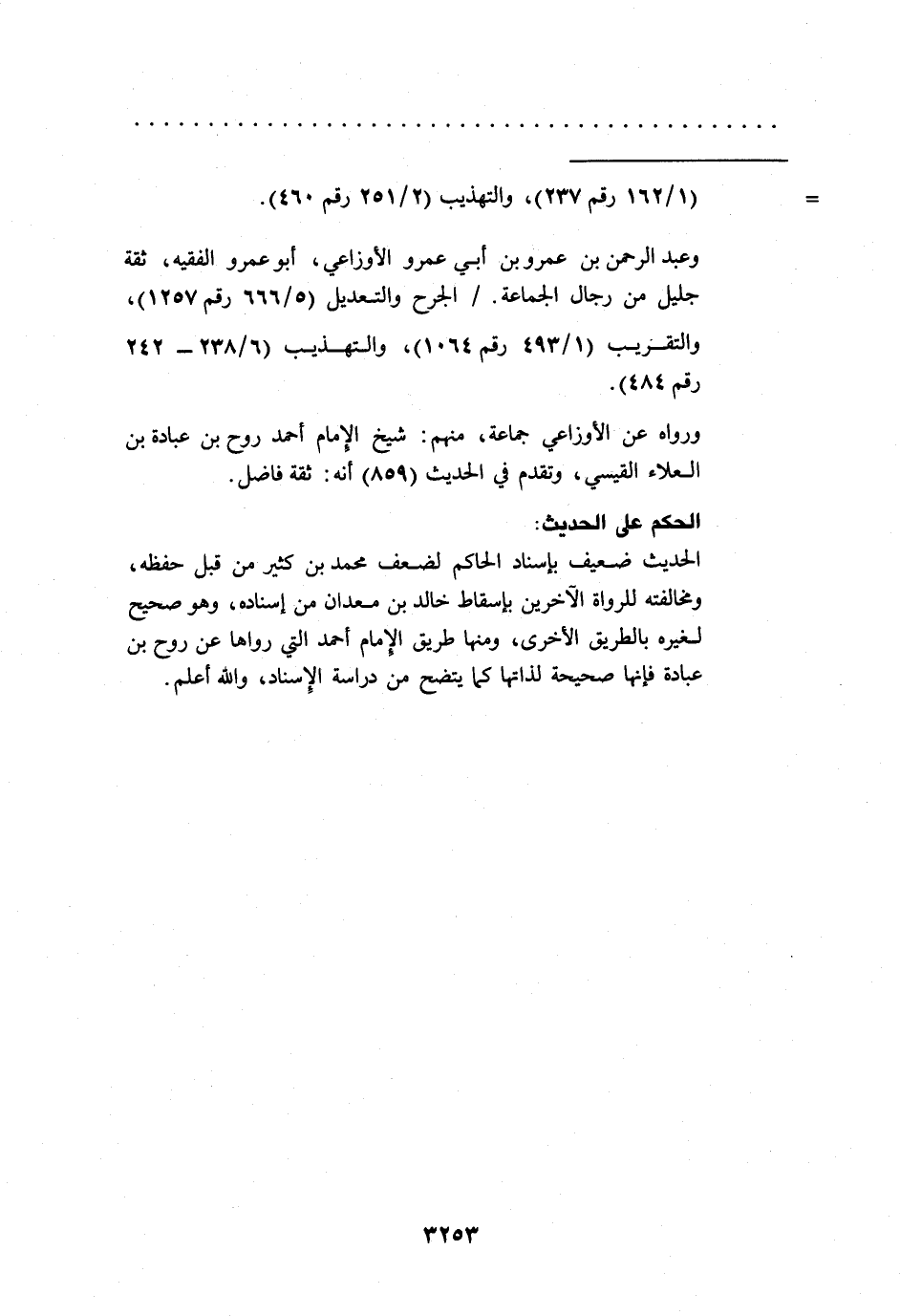 ورواه عن الأوزاعي جماعة، منهم: شيخ الإمام أحمد روح بن عبادة بن العلاء القيسي، وتقدم في الحديث (859) أنه: ثقة فاضل.