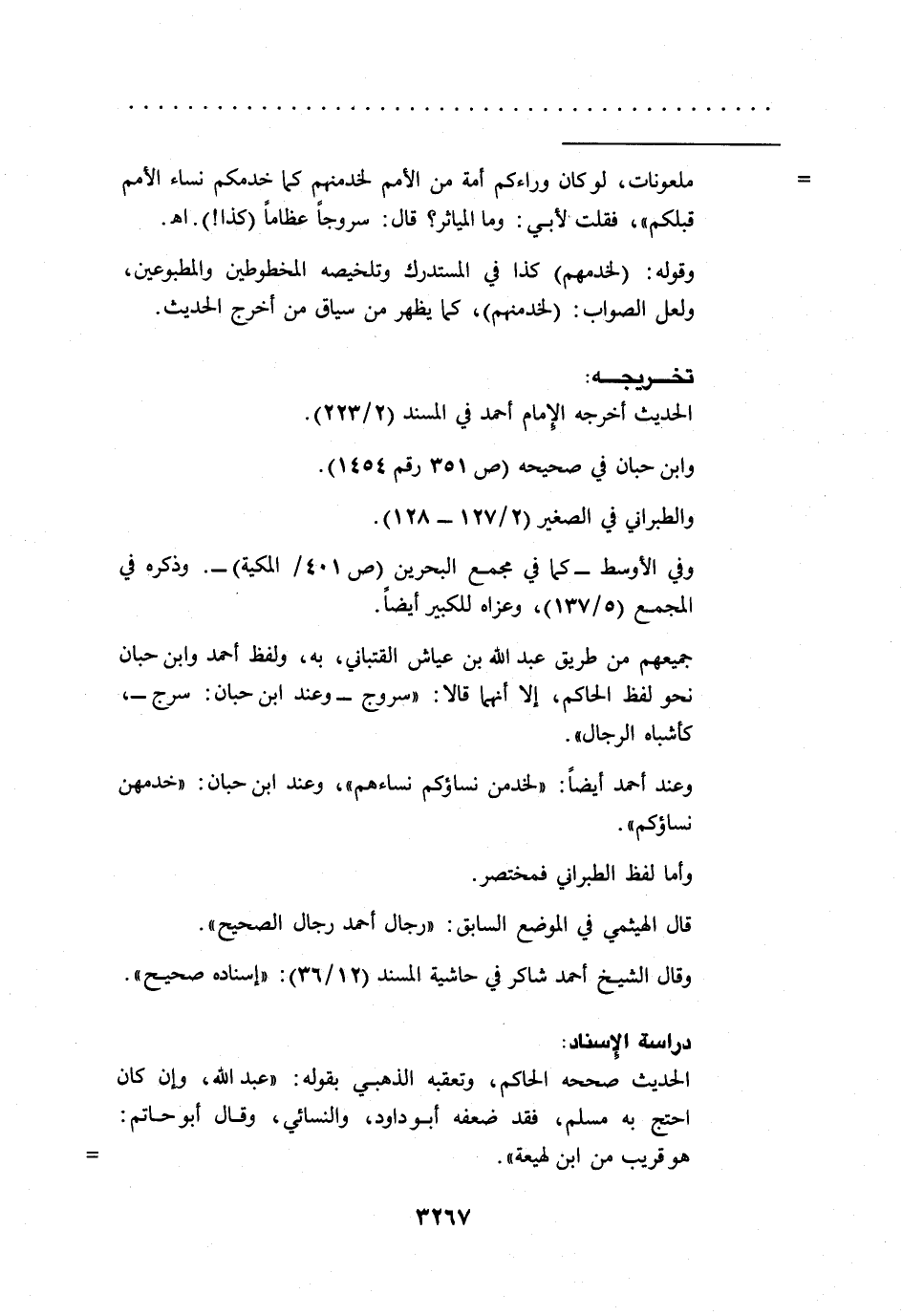 وعند أحمد أيضاً: "لخدمن نساؤكم نساءهم"، وعند ابن حبان: "خدمهن نساؤكم".