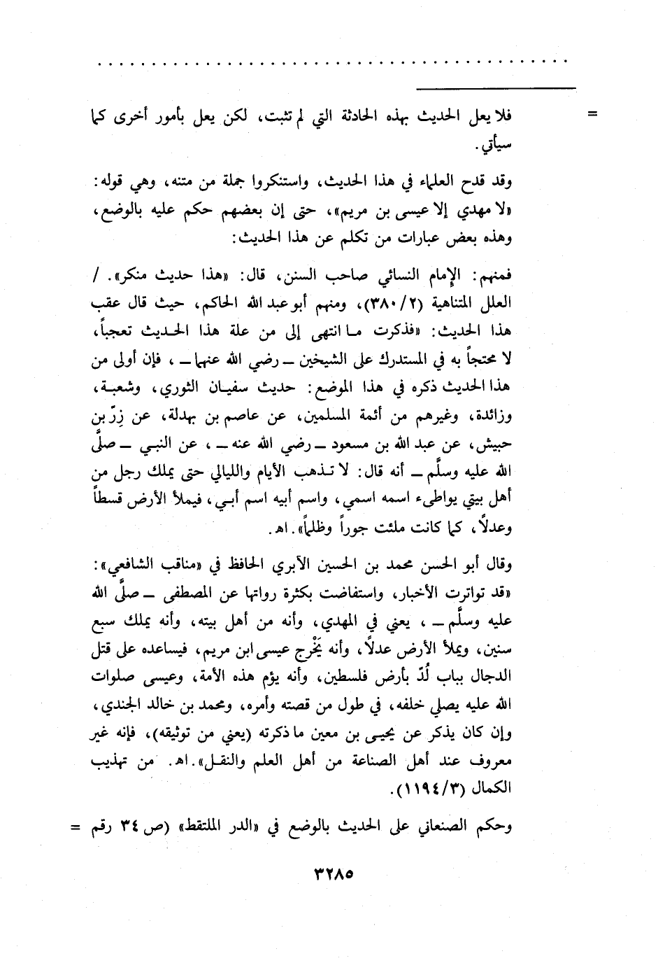 "لا مهدي إلا عيسى بن مريم"، حتى إن بعضهم حكم عليه بالوضع، وهذه بعض عبارات من تكلم عن هذا الحديث: