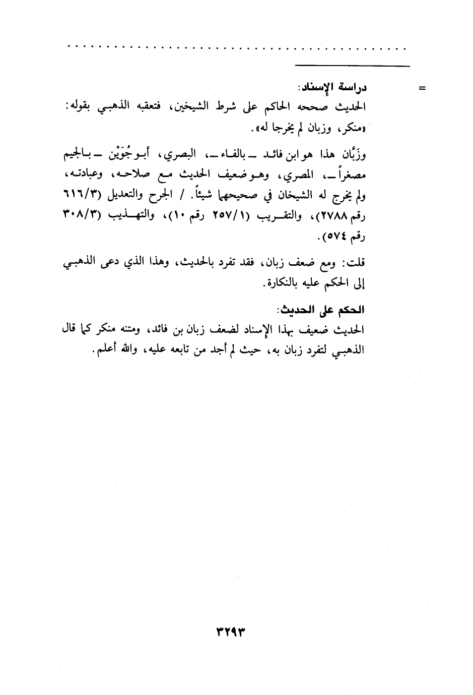 الحديث صححه الحاكم على شرط الشيخين، فتعقبه الذهبي بقوله: "منكر، وزبان لم يخرجا له".