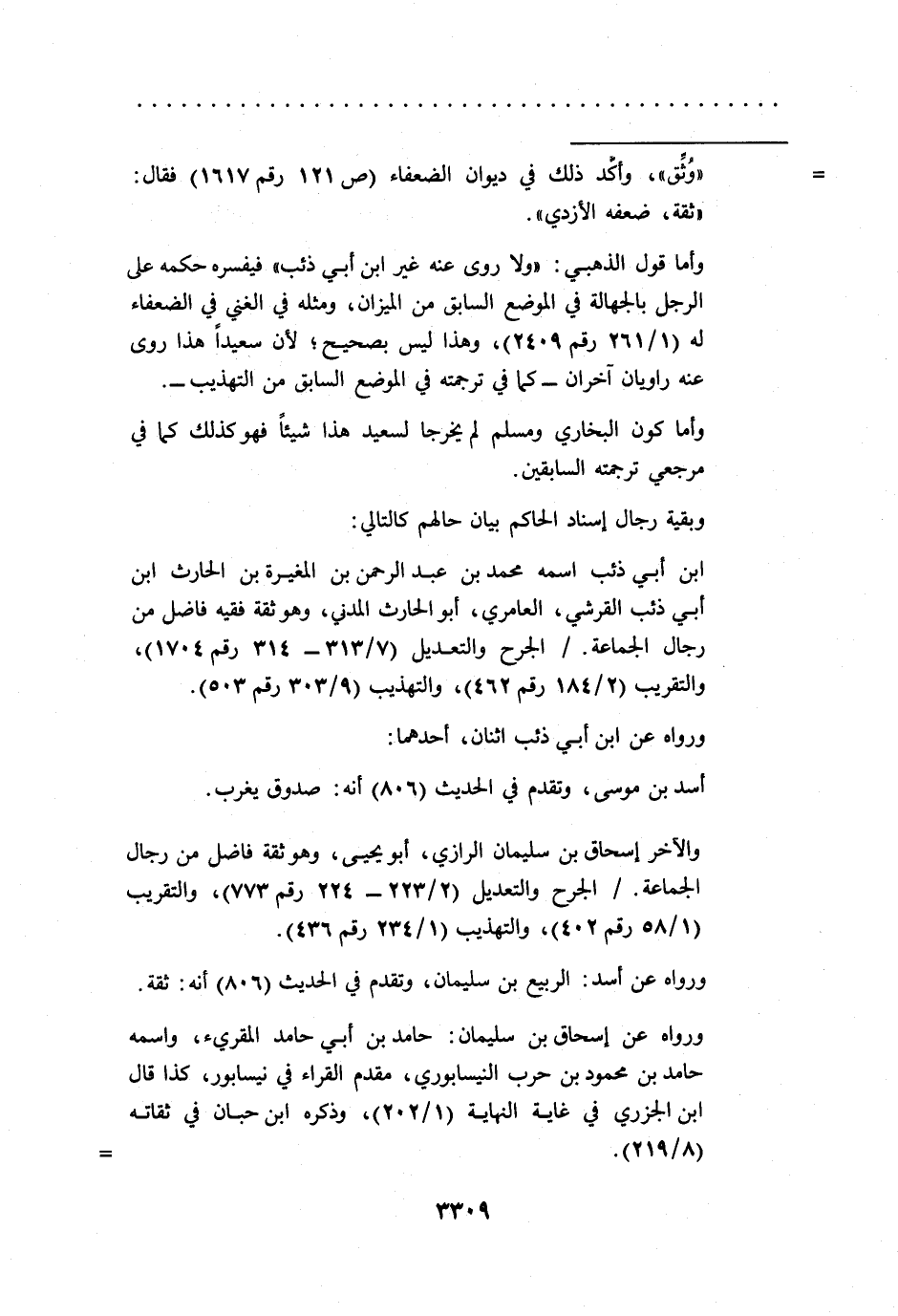 ابن أبي ذئب اسمه محمد بن عبد الرحمن بن المغيرة بن الحارث ابن أبي ذئب القرشي، العامري، أبو الحارث المدني، وهو ثقة فقيه فاضل من رجال الجماعة./ الجرح والتعديل (7/ 313 - 314 رقم 1704)، والتقريب (2/ 184 رقم 462)، والتهذيب (9/ 303 رقم 503).