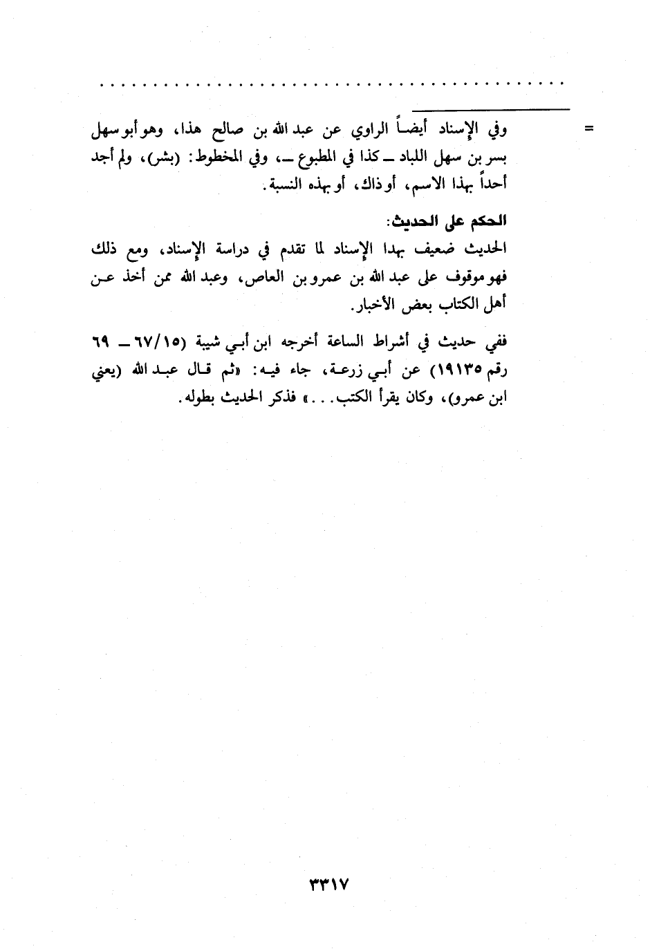 = وفي الإسناد أيضاً الراوي عن عبد الله بن صالح هذا، وهو أبو سهل بسر بن سهل اللباد -كذا في المطبوع-، وفي المخطوط: (بشر)، ولم أجد أحداً بهذا الاسم، أو ذاك، أو بهذه النسبة.
