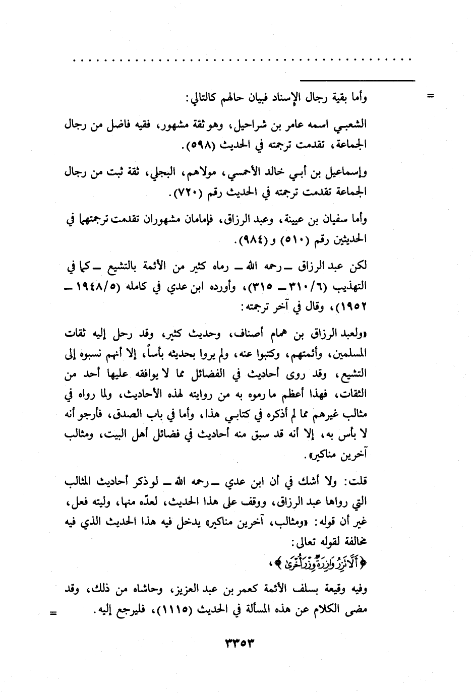 لكن عبد الرزاق -رحمه الله- رماه كثير من الأئمة بالتشيع -كما في التهذيب (6/ 310 - 315)، وأورده ابن عدي في كامله (5/ 1948 - 1952)، وقال في آخر ترجمته: