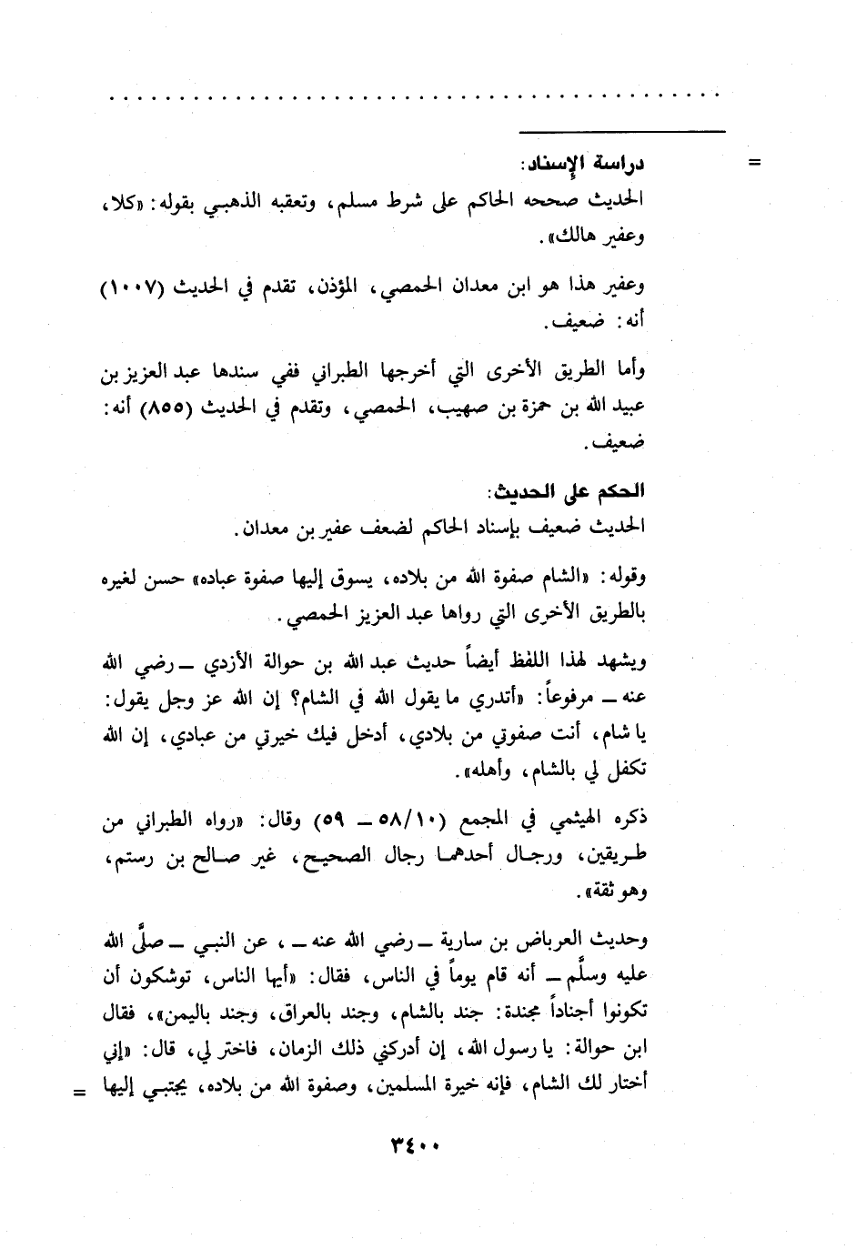وقوله: "الشام صفوة الله من بلاده، يسوق إليها صفوة عباده" حسن لغيره بالطريق الأخرى التي رواها عبد العزيز الحمصي.
