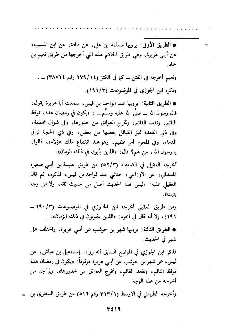 = * الطريق الأولى: يرويها مسلمة بن علي، عن قتادة، عن ابن المسيب، عن أبي هريرة، وهي طريق الحاكم هذه التي أخرجها من طريق نعيم بن حماد.
