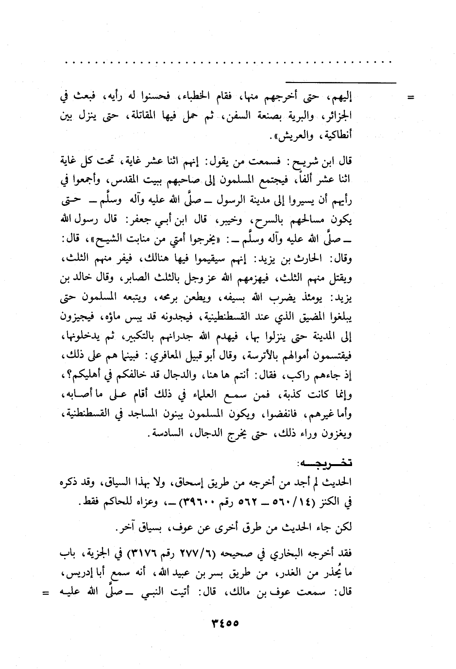 فقد أخرجه البخاري في صحيحه (6/ 277 رقم 3176) في الجزية، باب ما يحذر من الغدر، من طريق بسر بن عبيد الله، أنه سمع أبا إدريس، قال: سمعت عوف بن مالك، قال: أتيت النبي -صلى الله عليه =