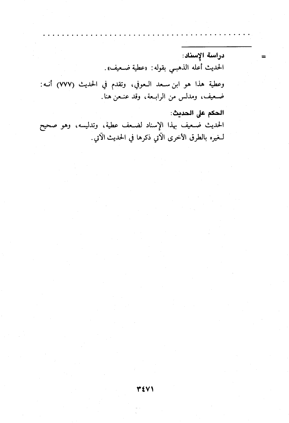 وعطية هذا هو ابن سعد العوفي، وتقدم في الحديث (777) أنه: ضعيف، ومدلس من الرابعة، وقد عنعن هنا.