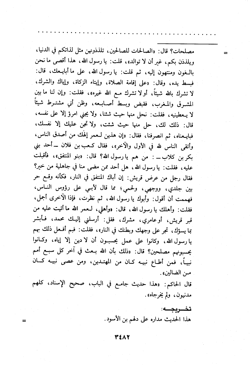 قال الحاكم: "هذا حديث جامع في الباب، صحيح الإسناد، كلهم مدنيون، ولم يخرجاه".