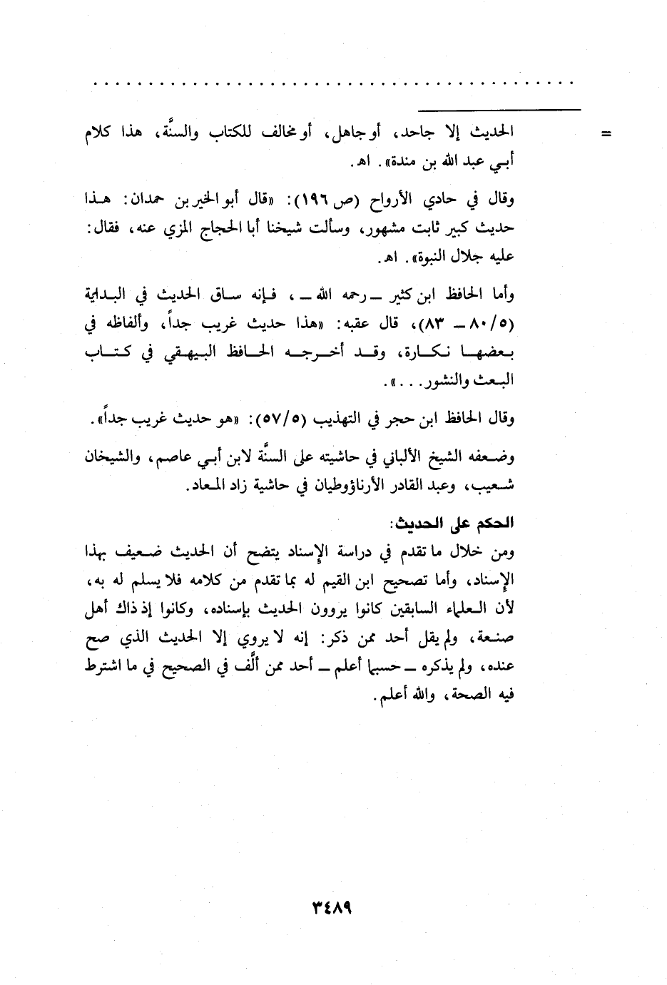 = الحديث إلا جاحد، أو جاهل، أو مخالف للكتاب والسنَّة، هذا كلام أبي عبد الله بن مندة". اهـ.