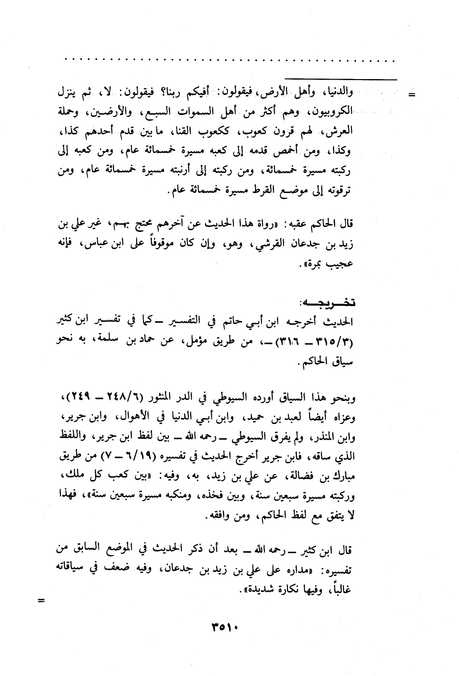 قال الحاكم عقبه: "رواة هذا الحديث عن آخرهم محتج بهم، غير علي بن زيد بن جدعان القرشي، وهو، وإن كان موقوفاً على ابن عباس، فإنه عجيب بمرة".