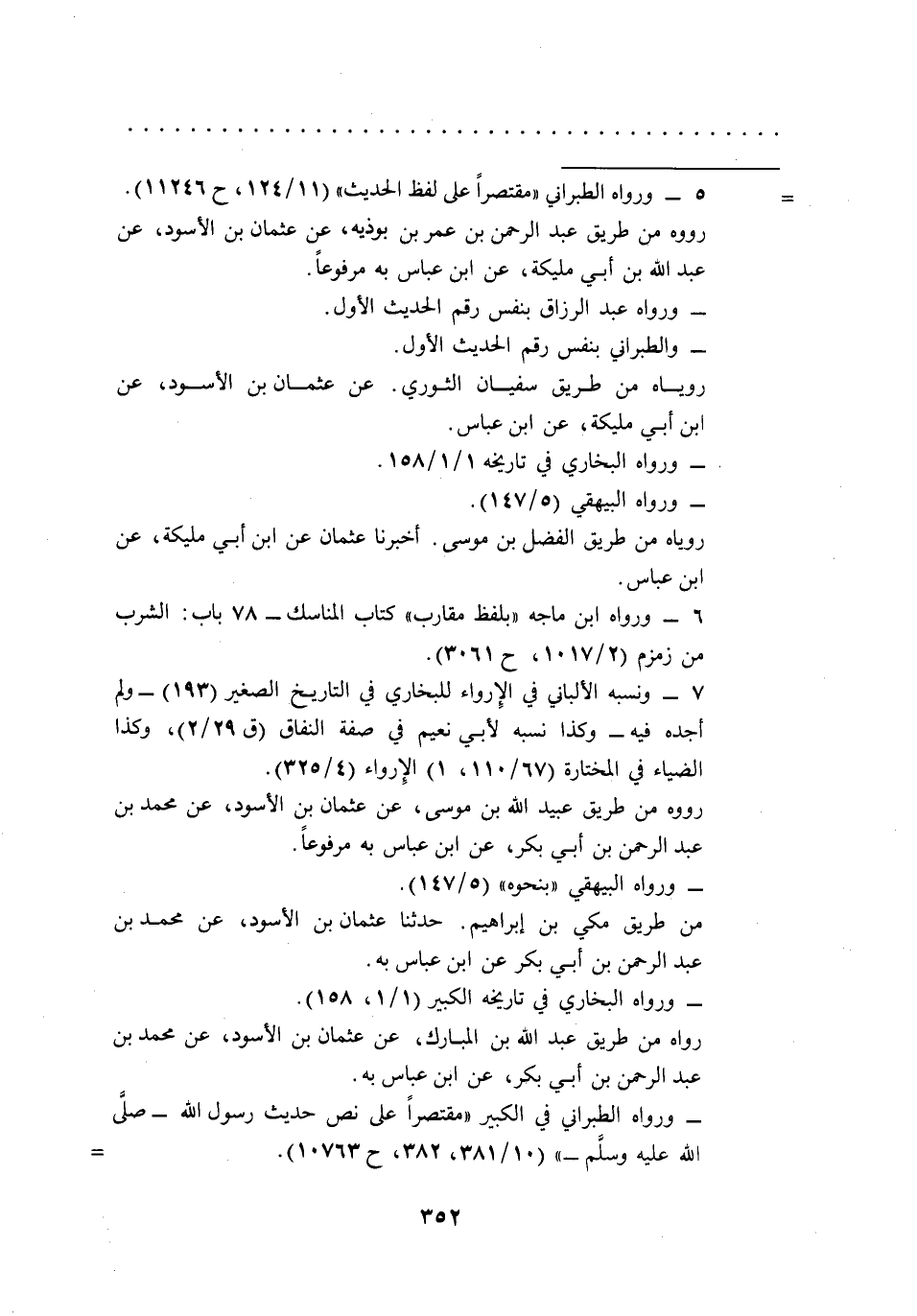 روياه من طريق الفضل بن موسى. أخبرنا عثمان عن ابن أبي مليكة، عن ابن عباس.