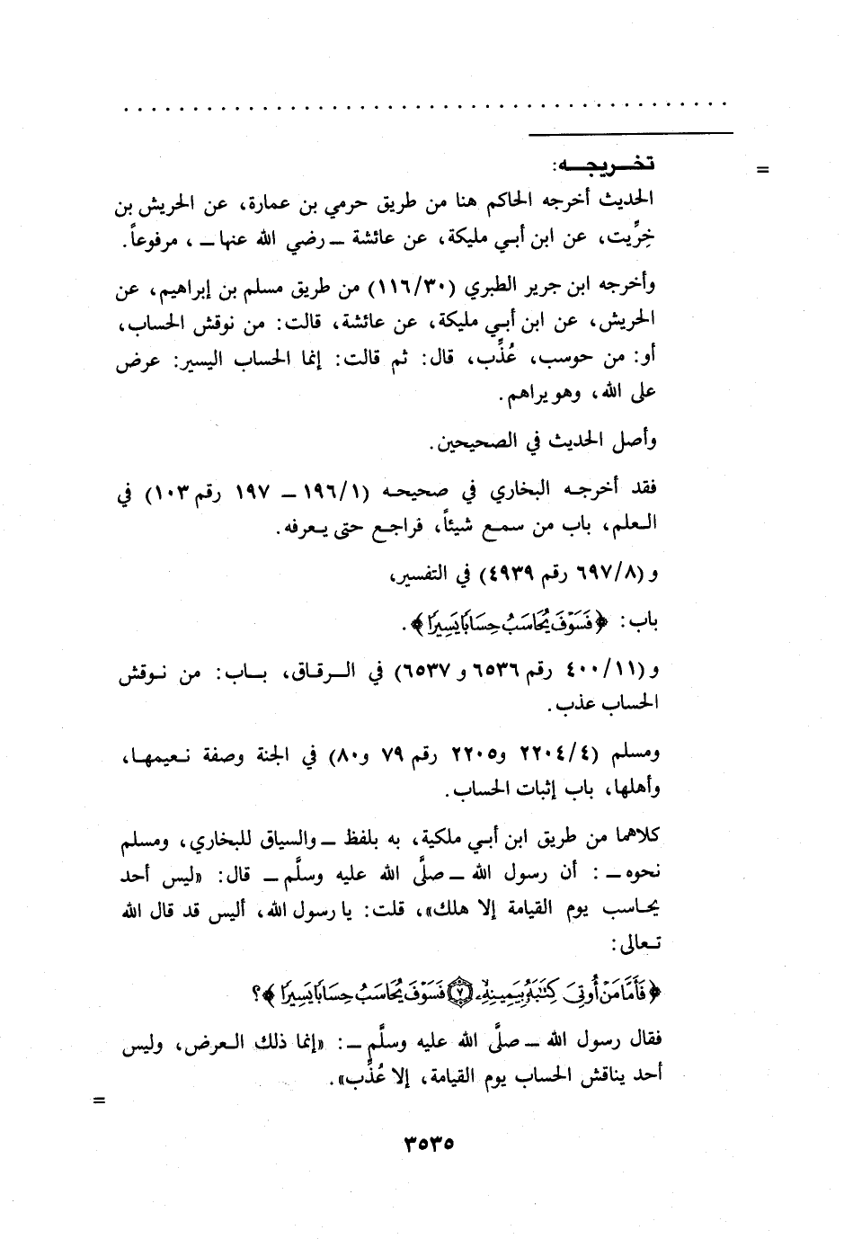ومسلم (4/ 2204 و 2205 رقم 79 و80) في الجنة وصفة نعيمها، وأهلها، باب إثبات الحساب.