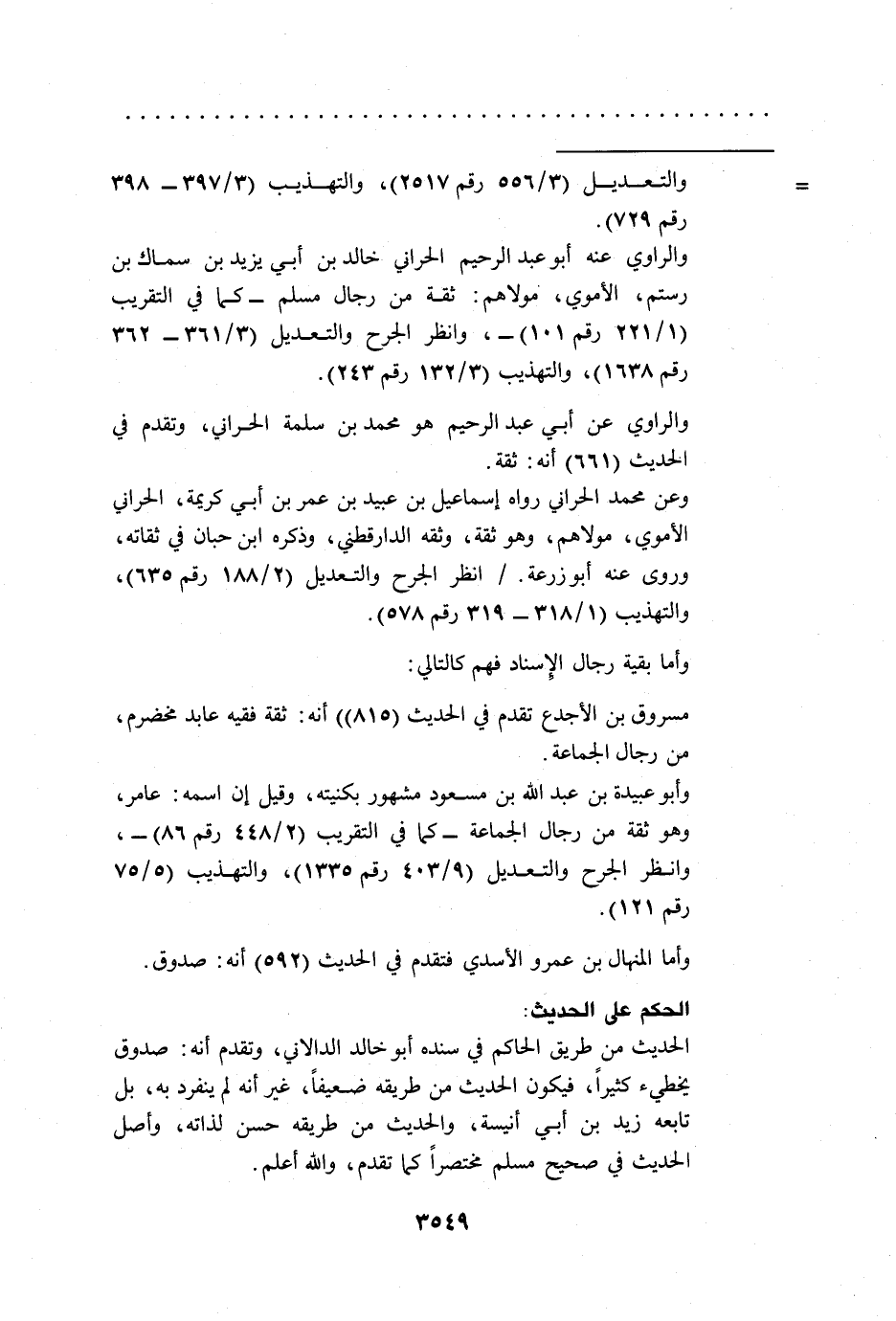وعن محمد الحراني رواه إسماعيل بن عبيد بن عمر بن أبي كريمة، الحراني الأموي، مولاهم، وهو ثقة، وثقه الدارقطني، وذكره ابن حبان في ثقاته، وروى عنه أبو زرعة. / انظر الجرح والتعديل (2/ 188 رقم 635)، والتهذيب (1/ 318 - 319 رقم 578).