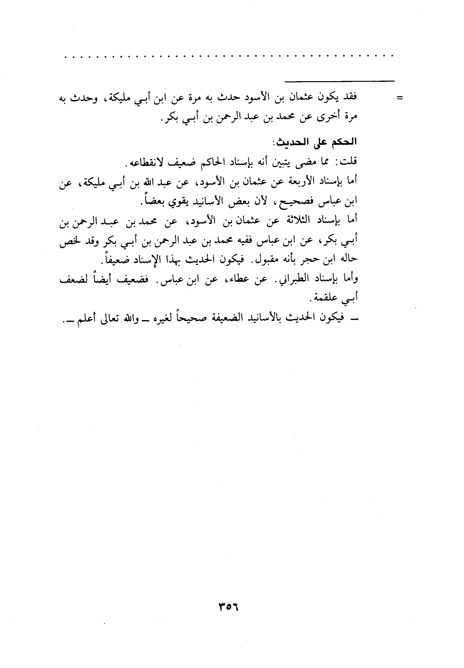 = فقد يكون عثمان بن الأسود حدث به مرة عن ابن أبي مليكة، وحدث به مرة أخرى عن محمد بن عبد الرحمن بن أبي بكر.