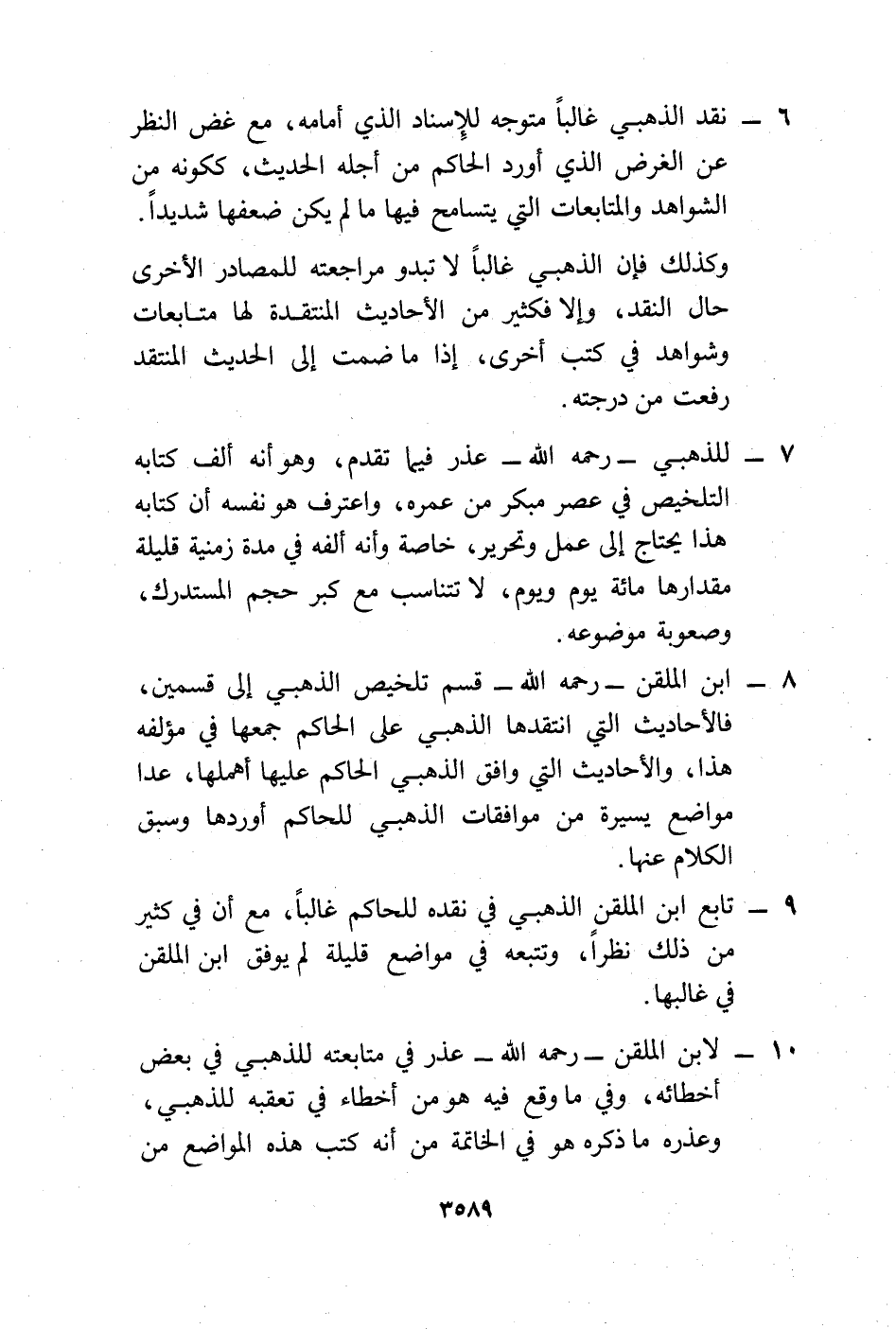 9 - تابع ابن الملقن الذهبي في نقده للحاكم غالباً، مع أن في كثير من ذلك نظراً، وتتبعه في مواضع قليلة لم يوفق ابن الملقن في غالبها.