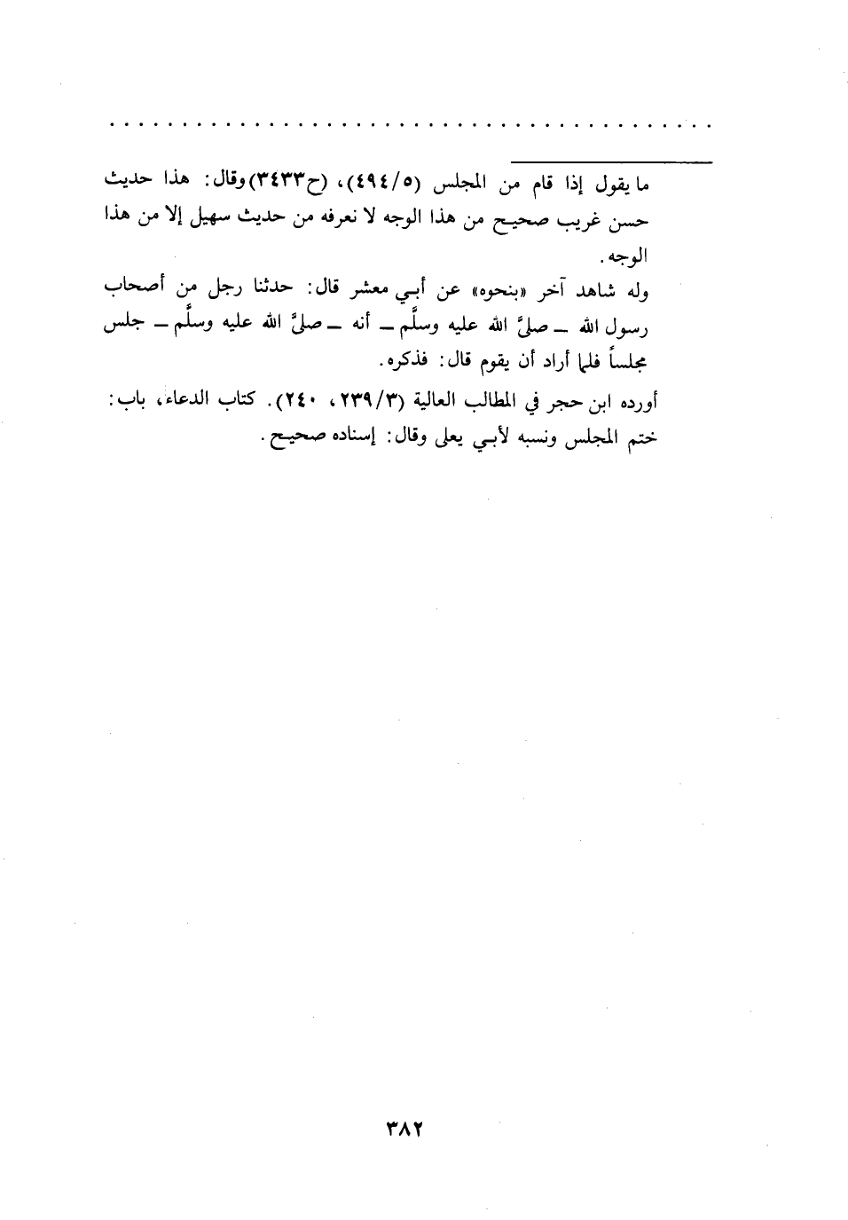= ما يقول إذا قام من المجلس (5/ 494)، (ح 3433) وقال: هذا حديث حسن غريب صحيح من هذا الوجه لا نعرفه من حديث سهيل إلا من هذا الوجه.