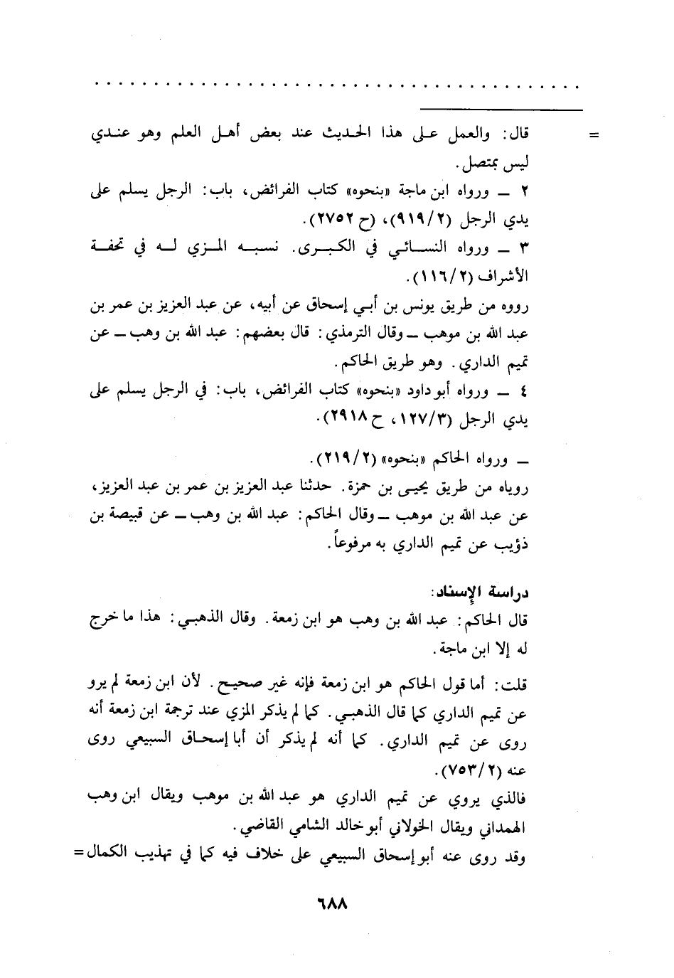 قلت: أما قول الحاكم هو ابن زمعة فإنه غير صحيح. لأن ابن زمعة لم يرو عن تميم الداري كما قال الذهبي. كما لم يذكر المزي عند ترجمة ابن زمعة أنه روى عن تميم الداري. كما أنهم لم يذكر أن أبا إسحاق السبيعي روى عنه (2/ 753).