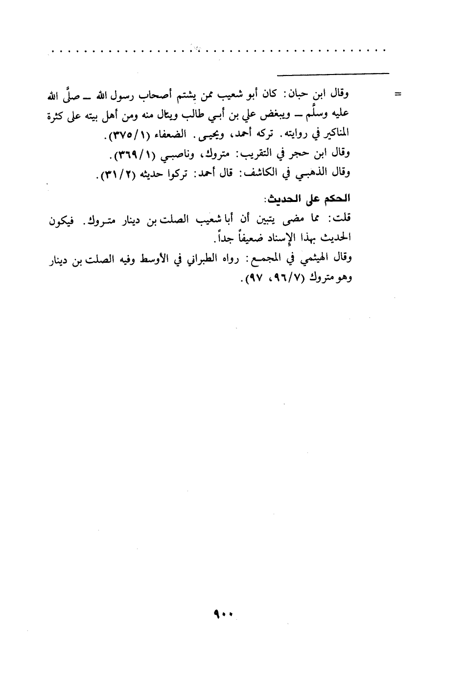 قلت مما مضى يتبين أن أبا شعيب الصلت بن دينار مترك. فيكون الحديث بهذا الإسناد ضعيفاً جداً.