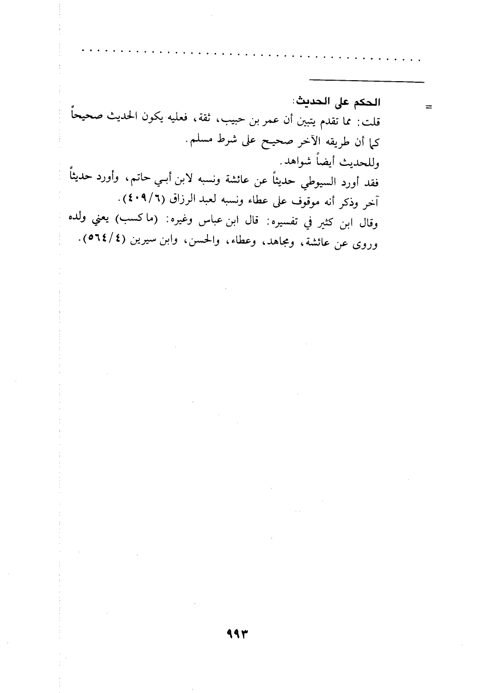 فقد أورد السيوطي حديثاً عن عائشة ونسبه لابن أبي حاتم، وأورد حديثاً آخر وذكر أنه موقوف على عطاء ونسبه لعبد الرزاق (6/ 409).