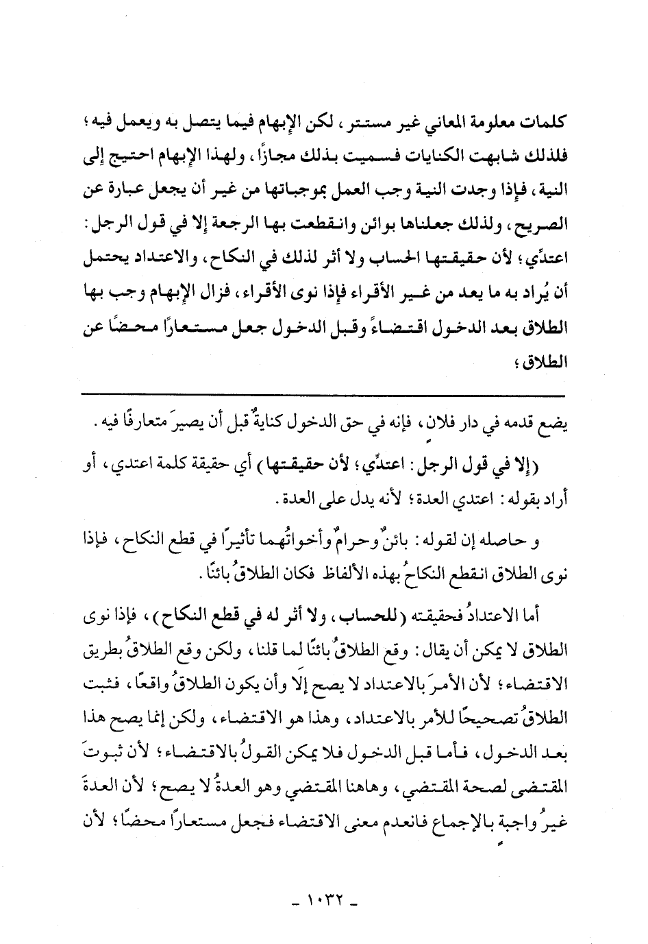أما الاعتداد فحقيقته (للحساب، ولا أثر له في قطع النكاح)، فإذا نوى الطلاق لا يمكن أن يقال: وقع الطلاق بائنًا لما قلنا، ولكن وقع الطلاق بطريق الاقتضاء؛ لأن الأمر بالاعتداد لا يصح إلا وأن يكون الطلاق واقعًا، فثبت الطلاق تصحيحًا للأمر بالاعتداد، وهذا هو الاقتضاء، ولكن إنما يصح هذا بعد الدخول، فأما قبل الدخول فلا يمكن القول بالاقتضاء؛ لأن ثبوت المقتضى لصحة المقتضي، وهاهنا المقتضي وهو العدة لا يصح؛ لأن العدة غير واجبة بالإجماع فانعدم معنى الاقتضاء فجعل مستعارًا محضًا؛ لأن