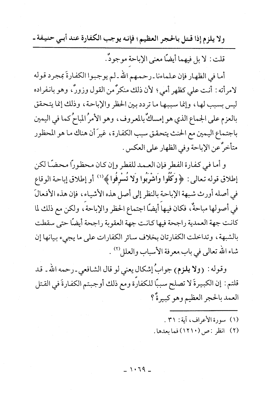 وقوله: (ولا يلزم) جواب إشكال يعني لو قال الشافعي- رحمه الله- قد قلتم: إن الكبيرة لا تصلح سببًا للكفارة ومع ذلك أوجبتم الكفارة في القتل العمد بالحجر العظيم وهو كبيرة؟