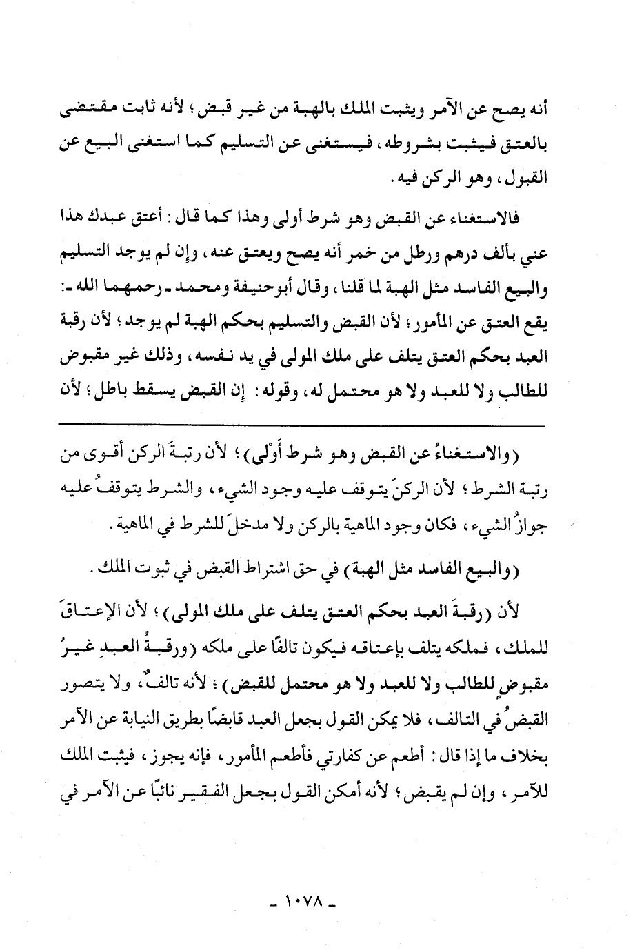(والاستغناء عن القبض وهو شرط أولى)؛ لأن رتبة الركن أقوى من رتبة الشرط؛ لأن الركن يتوقف عليه وجود الشيء، والشرط يتوقف عليه وجود الشيء، والشرط يتوقف عليه جواز الشيء، فكان وجود الماهية بالركن ولا مدخل للشرط في الماهية.
