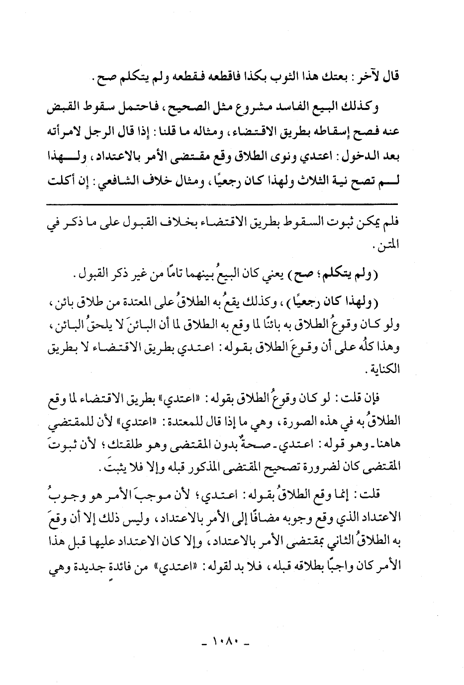 فإن قلت: لو كان وقوع الطلاق بقوله: "اعتدى" بطريق الاقتضاء لما وقع الطلاق به في هذه الصورة، وهي ما إذا قال للمعتدة: "اعتدي" لأن للمقتضي هاهنا- وهو قوله: اعتدي- صحة بدون المقتضى وهو طلقتك؛ لأن ثبوت المقتضى كان لضرورة تصحيح المقتضى المذكور قبله وإلا فلا يثبت.