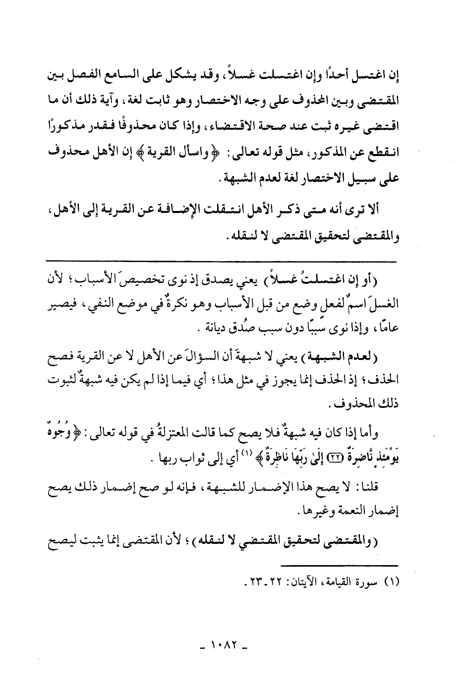 وأما إذا كان فيه شبهة فلا يصح كما قالت المعتزلة في قوله تعالى: {وُجُوهٌ يَوْمَئِذٍ نَاضِرَةٌ (22) إِلَى رَبِّهَا نَاظِرَةٌ} أي إلى ثواب ربها.