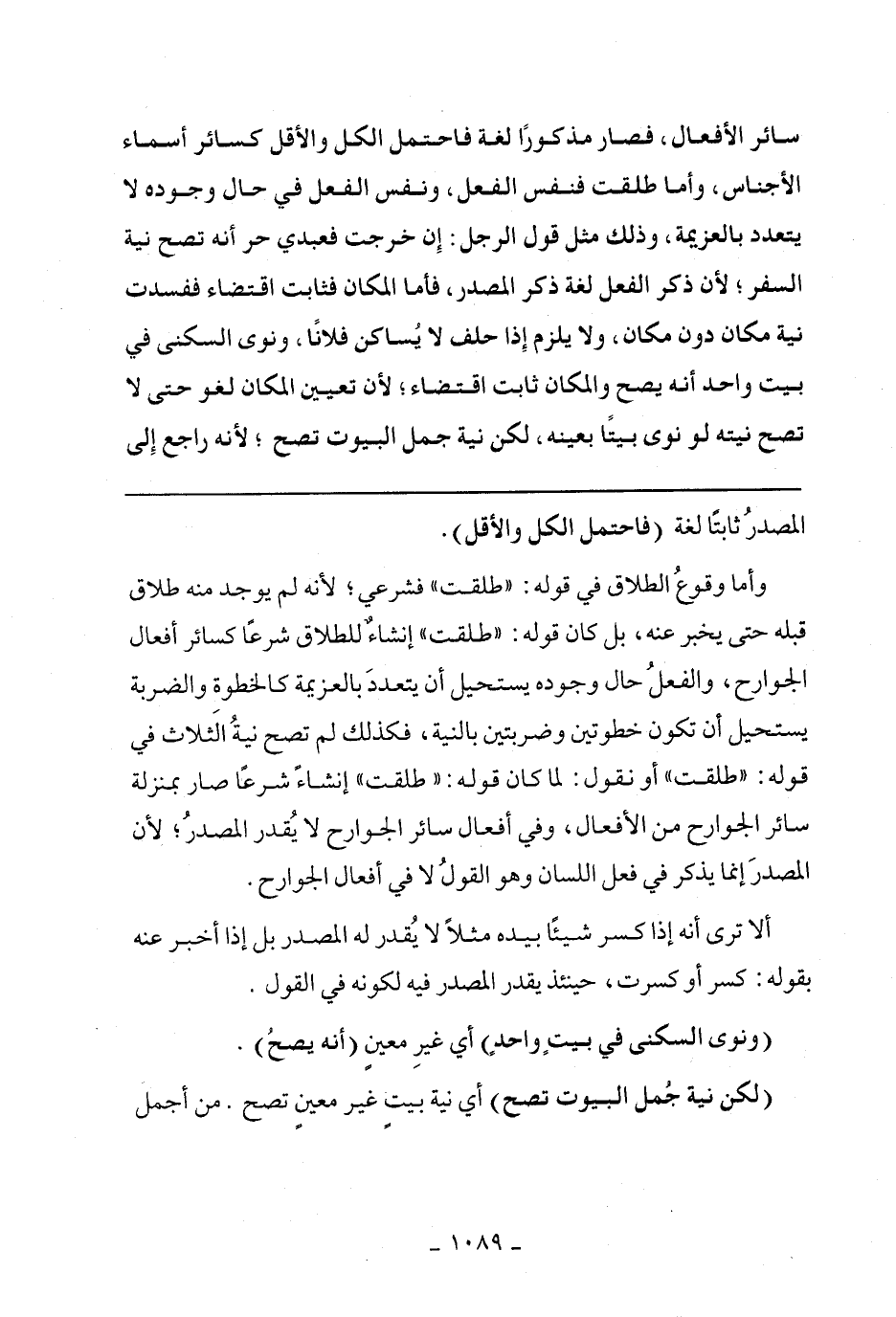 وأما وقوع الطلاق في قوله: "طلقت" فشرعي؛ لأنه لم يوجد منه طلاق قبله حتى يخبر عنه، بل كان قوله: "طلقت" إنشاء للطلاق شرعًا كسائر أفعال الجوارح، والفعل حال وجوده يستحيل أن يتعدد بالعزيمة كالخطوة والضربة يستحيل أن تكون خطوتين وضربتين بالنية، فكذلك لم تصح نية الثلاث في قوله: "طلقت" أو نقول: لما كان قوله: "طلقت" إنشاء شرعًا صار بمنزلة سائر الجوارح من الأفعال، وفي أفعال سائر الجوارح لا يقدر المصدر؛ لأن المصدر إنما يذكر في فعل اللسان وهو القول لا في أفعال الجوارح.